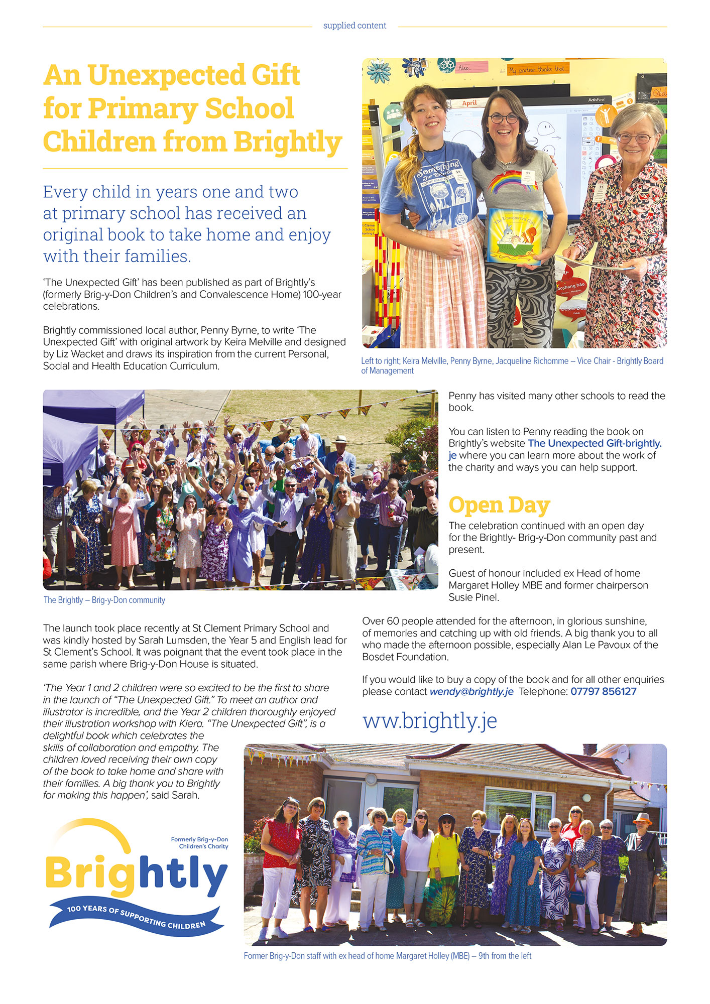 Did you see our article in the Parish Magazine which features the heartwarming launch of The Unexpected Gift, a new book which we had written and gifted to Year 1 and 2 students across Jersey. You’ll also find highlights from our open day at Brig-y-Don etc.